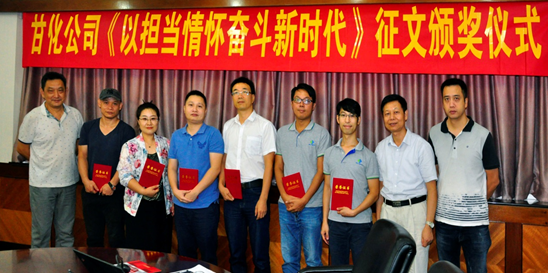 2019年8月30日下午,在甘化大廈15樓會(huì)議室,公司黨委、工會(huì)舉辦了《以擔(dān)當(dāng)情懷奮斗新時(shí)代》獲獎(jiǎng)?wù)魑念C獎(jiǎng)儀式。儀式由黨委書記、工會(huì)主席方小潮主持。公司各支部委員、工會(huì)委員和征文作者共16人參加了會(huì)議。本次活動(dòng)共收到征文11篇,參賽征文經(jīng)專業(yè)評(píng)委評(píng)選,獲獎(jiǎng)8篇。