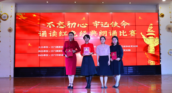 甘化公司人力資源部副經(jīng)理陸萍參加由江門市高新區(qū)(江海區(qū))火炬大廈黨建共同體、江門國家高新區(qū)光電行業(yè)協(xié)會主辦,江門市高新區(qū)(江海區(qū))稅務(wù)局第四黨支部、江門市江藝實(shí)業(yè)有限公司黨支部承辦的“不忘初心 牢記使命”誦讀紅色經(jīng)典朗誦比賽。經(jīng)過初賽、復(fù)賽多場激烈的角逐,于2019年10月18日的決賽中,她以紅色經(jīng)典作品《雪山小太陽》榮獲二等獎。
