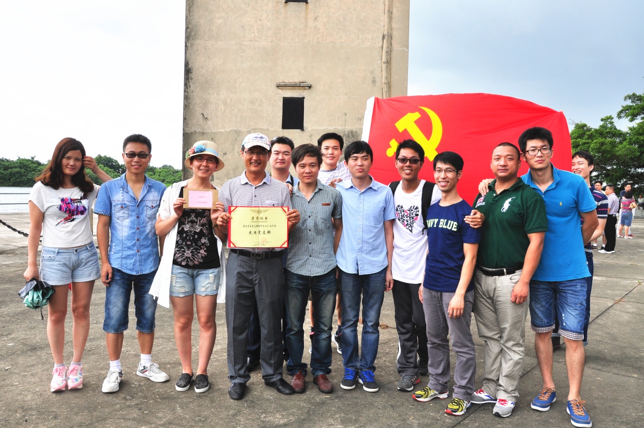 參觀當天,艷陽高照,在歡聲笑語的旅游車上,建黨紀念活動首先在熱烈的黨史知識有獎問答競賽拉開了帷幕。當答題告罄,獎品紛紛易主時,汽車就抵達開平南樓。該樓建于1921年,樓高七層19米,每層均有機槍和探照燈,是司徒氏人為防盜賊而建??箲饡r期,七名歸僑及僑屬青年曾在此堅守八天九夜痛擊日軍,最后彈盡糧絕,壯士全部捐軀。七壯士雕塑雄壯威武,英靈如塔,藍天之下,民族精神直沖云霄。我們就在當年這一浴血奮戰的所在默默地緬懷,莊重地對獲得2015年度先進黨支部和優秀黨員進行表彰,展開鮮艷的黨旗合影……過程中,我們幾乎聽到烈士群像的呼吸。