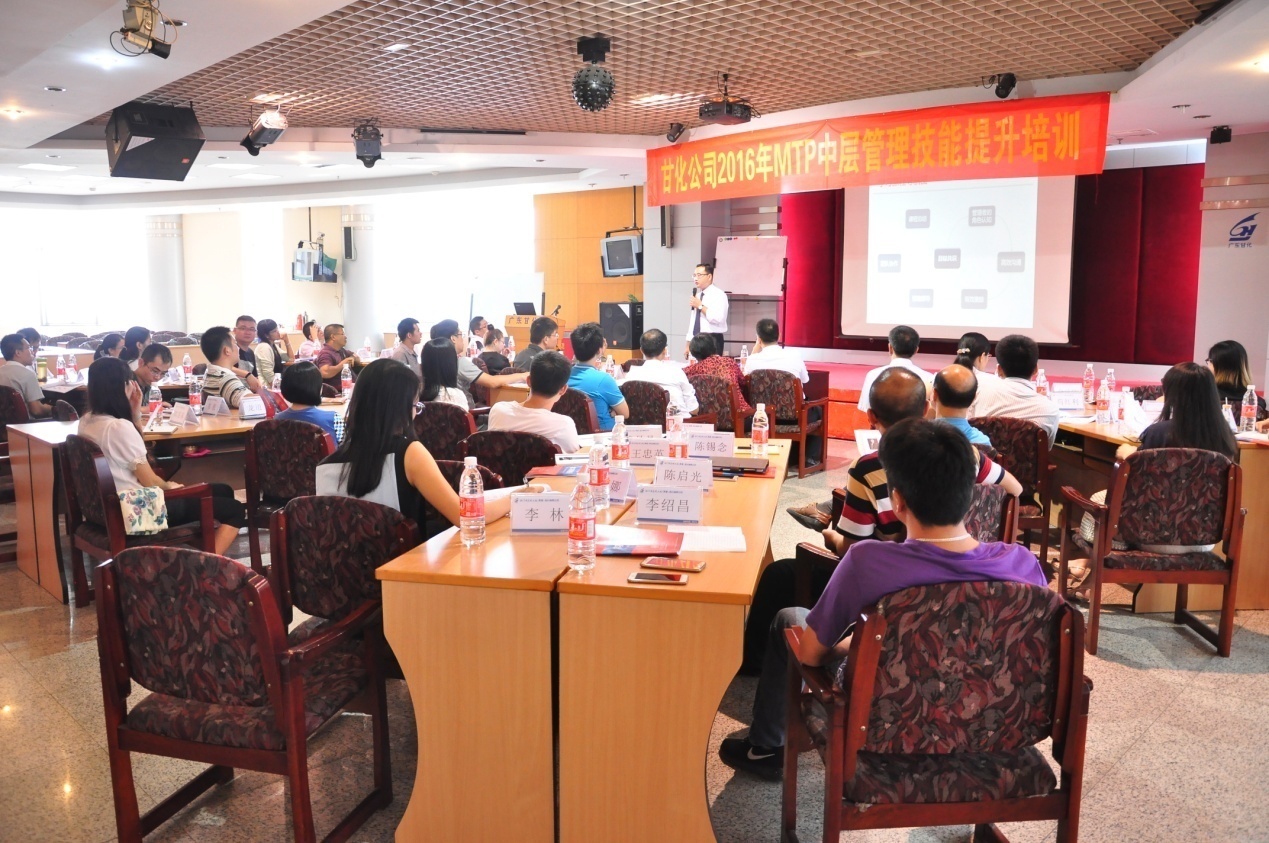 2016年7月8日至9日,在甘化大廈17樓會議室舉辦公司2016年MTP中層管理技能提升培訓,本次培訓邀請了益策(中國)學習管理機構高級講師談煒老師作為講師,甘化公司本部中層、生物中心及德力光電中高層近50人參加了此次培訓。
