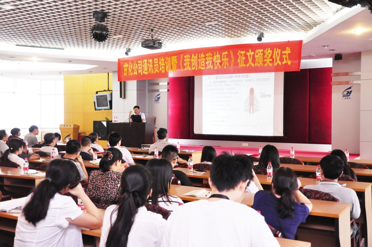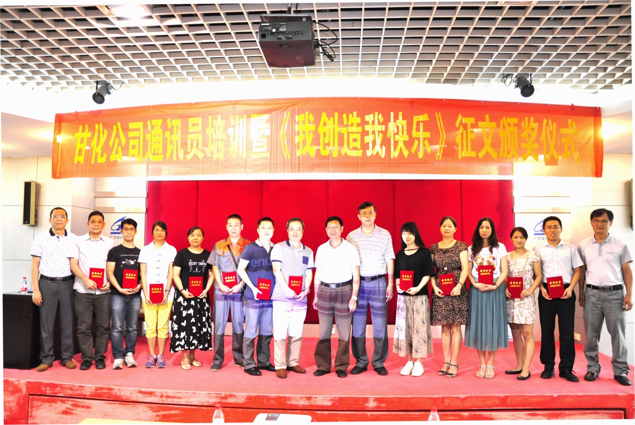 2016年8月25日下午,在甘化大廈17樓會議廳,公司黨委、工會舉辦通訊員培訓暨《我創造,我快樂》獲獎征文頒獎儀式。培訓由黨委書記、工會主席方小潮主講。公司黨委委員、各支部委員、工會委員和各單位通訊員等49人參加了會議。